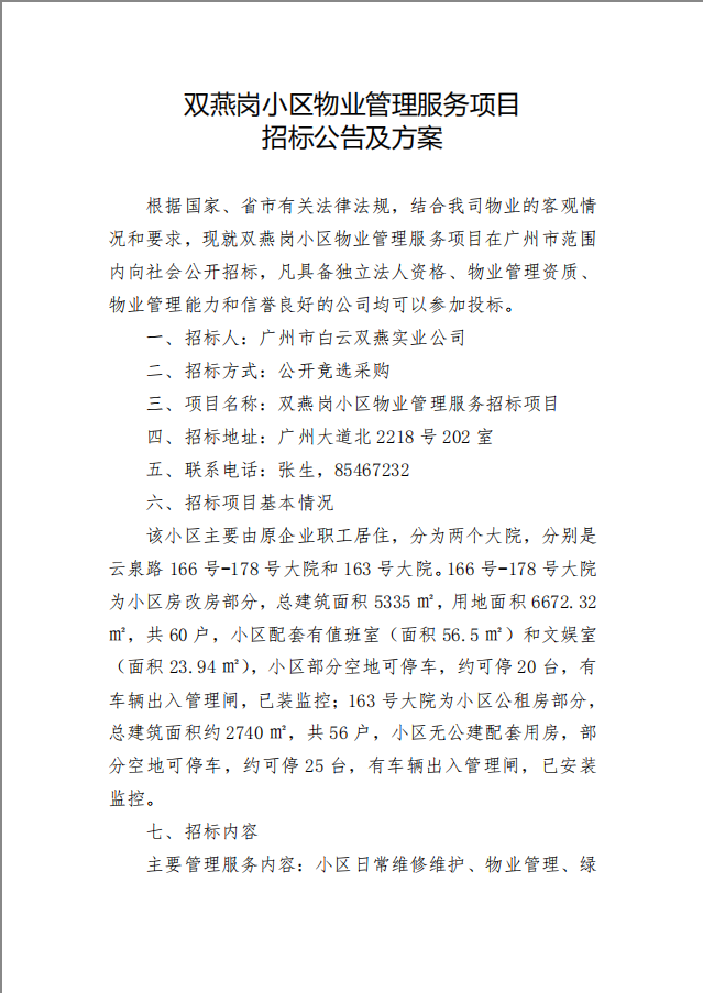 双燕岗小区物业管理服务项目招标公告及方案.docx